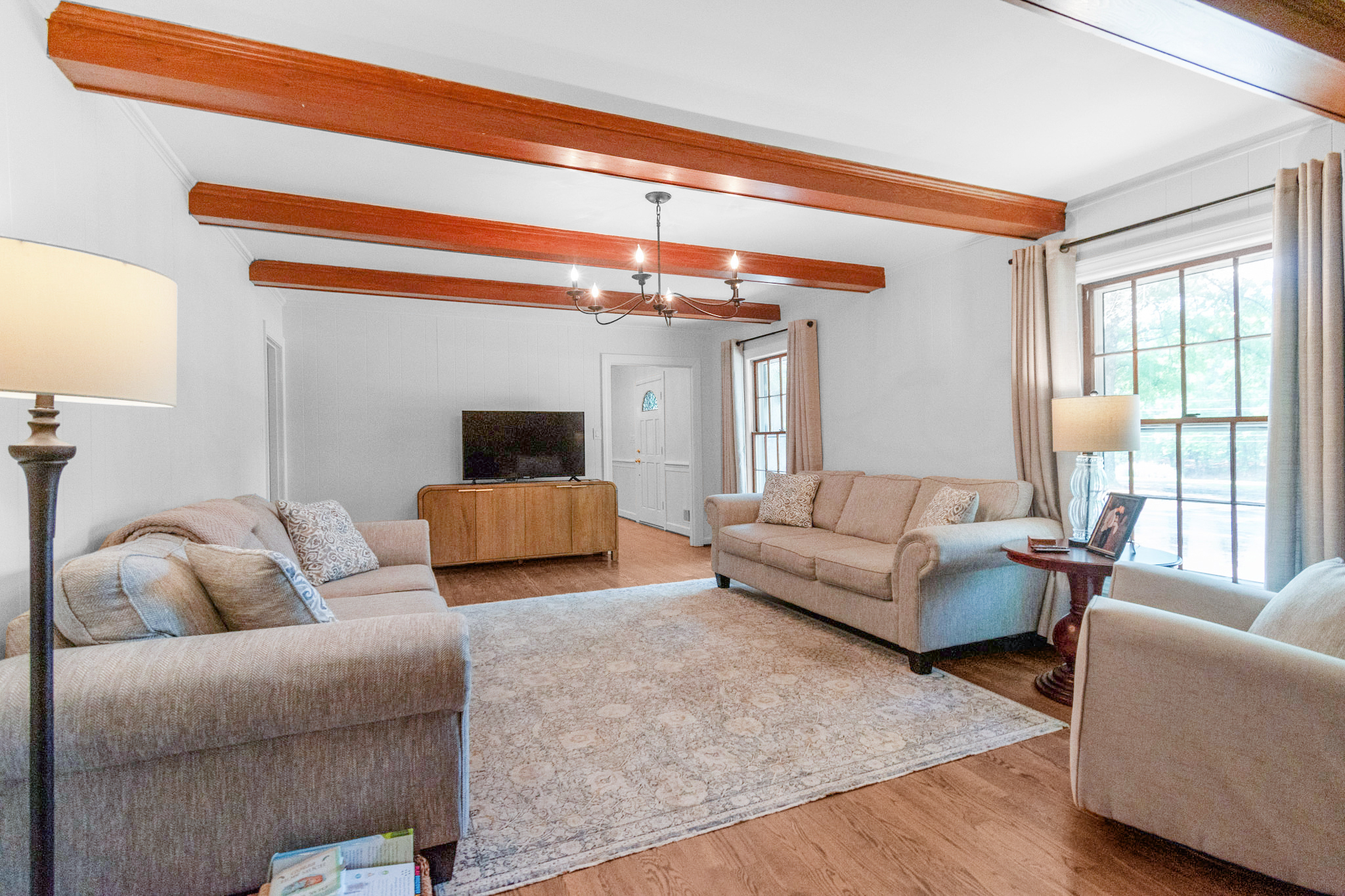 The 2023 roof replacement and recently refinished downstairs hardwood floors (2023) ensure this home is move-in ready, while the central air and heat pump system provides year-round comfort.