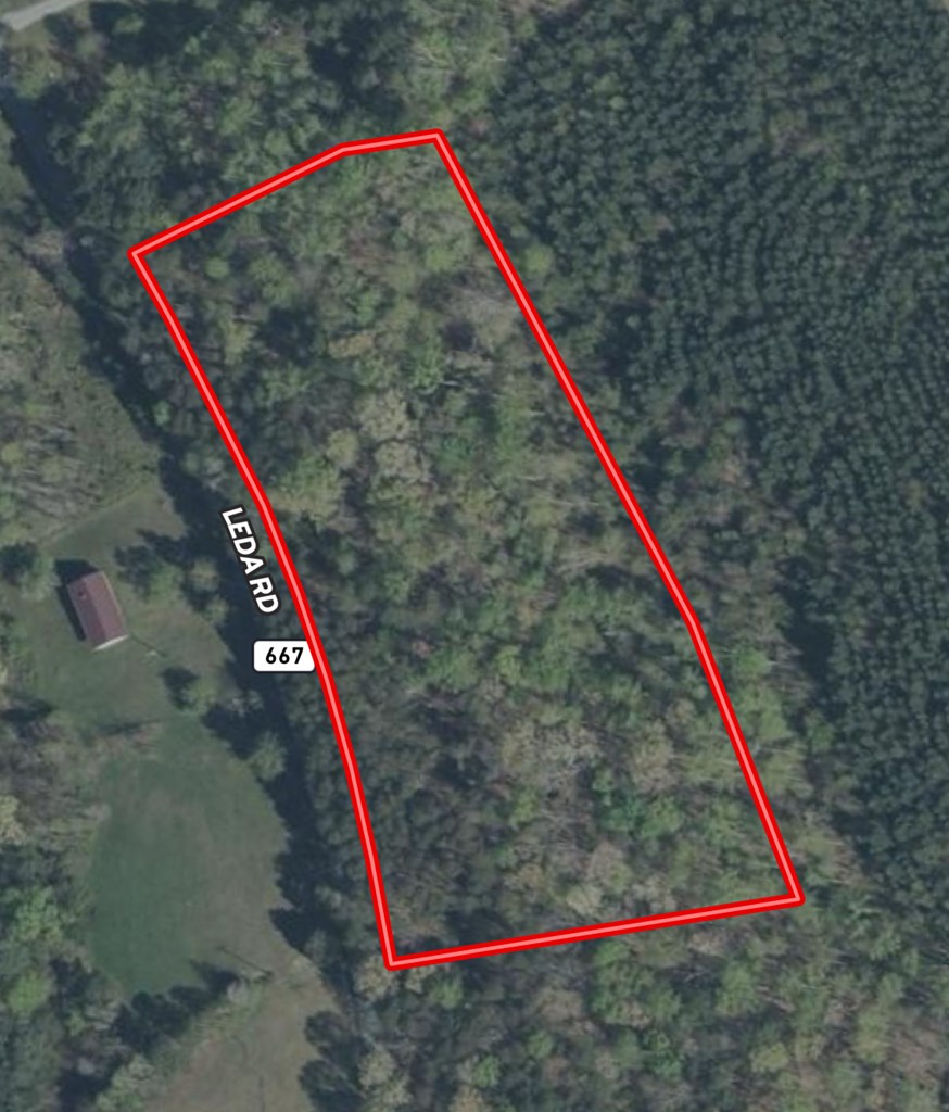 The tract offers long frontage on Leda Road, providing excellent access and good visibility in both directions. For the outdoor enthusiast, the property’s topography and existing mast production (food source) offer ample opportunity for archery hunting with ease.